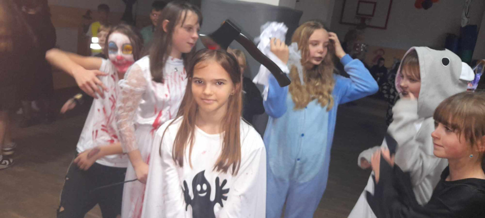 Dnia 31.10.2023r. w naszej szkole obył się bal z okazji Halloween. W imprezie brała udział cała szkoła. Samorząd Uczniowski zadbał o nastrój ozdabiając mury szkolne dekoracjami charakterystycznymi dla tego wydarzenia. Uczniowie przyszli do szkoły ubrani w kostiumy takie jak: wampiry, czarownice, zombie, duchy, kościotrupy itp. We wszystkich klasach został zorganizowany słodki poczęstunek, a następnie odbył się bal, na którym wszyscy bawili się wyśmienicie.