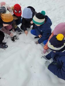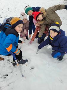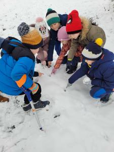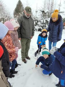 Na zajęciach z leśnikiem, pierwszaki uczyły się rozróżniać tropy zwierząt na śniegu. Udało im się również dostrzec stado saren na polu. Wiele ciekawych i zaskakujących obserwacji dokonały mądre dzieci.