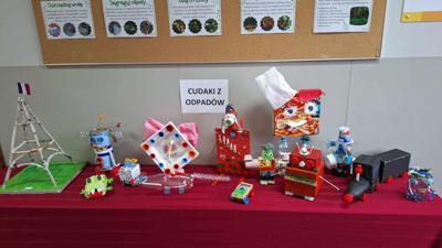 22 kwietnia na całym świecie obchodzony jest Międzynarodowy Dzień Ziemi. W tym dniu ludzie na całym świecie łączą siły, aby uświadomić wszystkim, że wspaniałe dary przyrody trzeba wykorzystywać mądrze – tak aby starczyło ich dla przyszłych pokoleń. W naszej szkole uczniowie wzięli udział w pogadance na temat ochrony przyrody oraz w Szkolnym Konkursie Ekologicznym – „Cudaki z odpadów”. Uczniowie wykazali się kreatywnością, na szkolną wystawę dostarczono mnóstwo ciekawych prac; pojawiły się roboty, lalki, samochody, zwierzęta, a to wszystko wykonane z butelek, puszek, kartonów i wielu innych niepotrzebnych już materiałów!