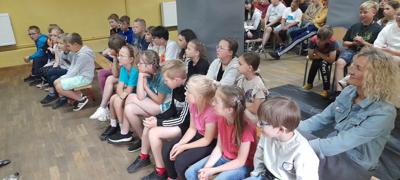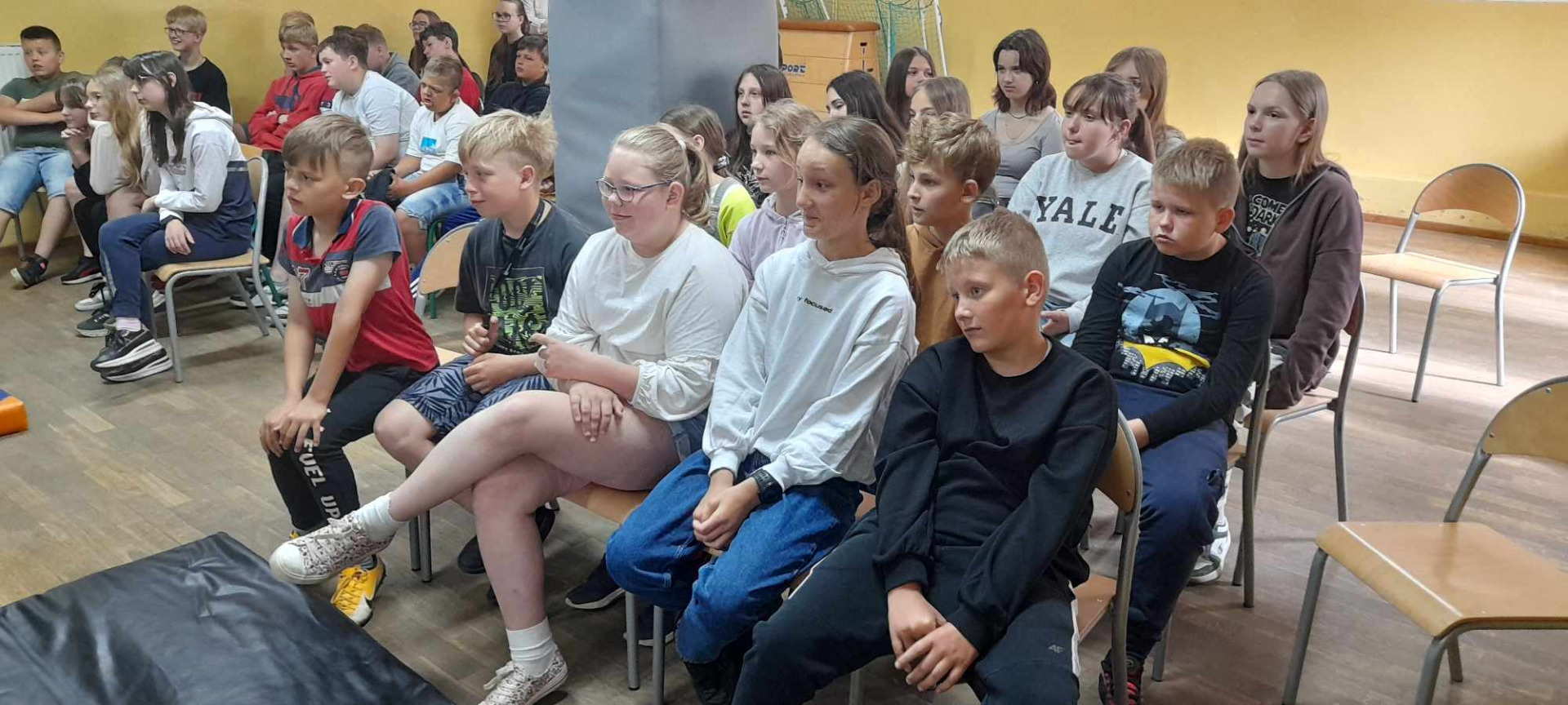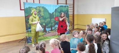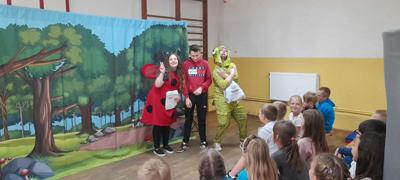 Dnia 23 maja uczniowie naszej szkoły uczestniczyli w przedstawieniu teatralnym "Gang Śmieciaków" w wykonaniu Teatru Grupy z Torunia. Celem spektaklu było promowanie ekologicznej postawy, jak należy dbać o środowisko. Było dużo zabawy, śmiechu i muzyki.