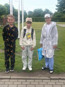 Dnia 14.06.2024 r. odbył się w naszej szkole Dzień Piżamy. Uczniowie tego dnia przyszli do szkoły ubrani w kolorowe piżamy, szlafroki i kapcie. Niektórzy przynieśli ze sobą ulubione maskotki, poduszki oraz koce.