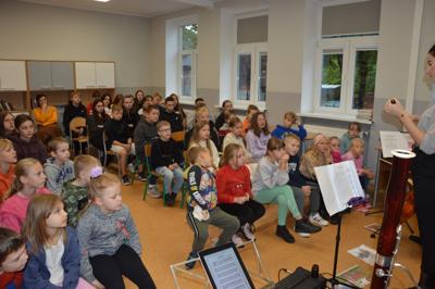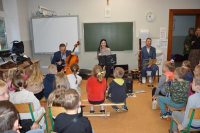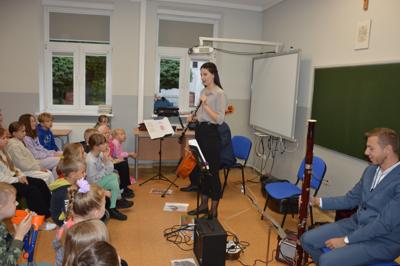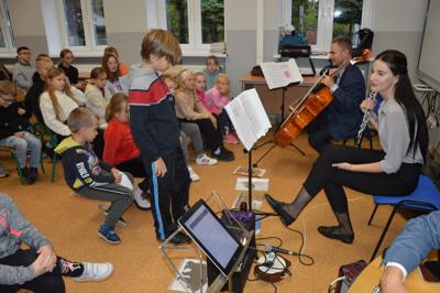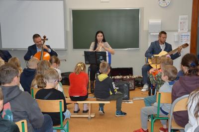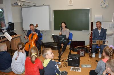 4 października 2024r. uczniowie naszej szkoły gościli muzyków z Filharmonii Koszalińskiej. Artyści przedstawili program pt. „Muzyczne ZOO”, w czasie którego uczniowie mieli możliwość zapoznania się z takimi instrumentami jak obój, fagot i wiolonczela.