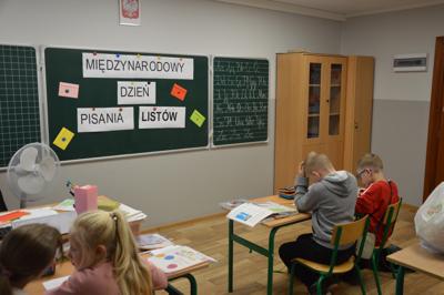 Dniu 9 października klasa 3 obchodziła Dzień Pisania Listów. Uczniowie z entuzjazmem przystąpili do tworzenia swoich listów, które w późniejszym czasie mieli okazję wysłać na poczcie w Sławnie. Dnia 15 października z okazji Dnia Poczty Polskiej dzieci wybrały się z wizytą na pocztę w Sławnie, gdzie Pani Kierownik przekazała dzieciom wiele cennych informacji na temat funkcjonowania tego ważnego miejsca. Uczniowie dowiedzieli się, jak wysyłać listy i paczki oraz jak wygląda praca na poczcie.