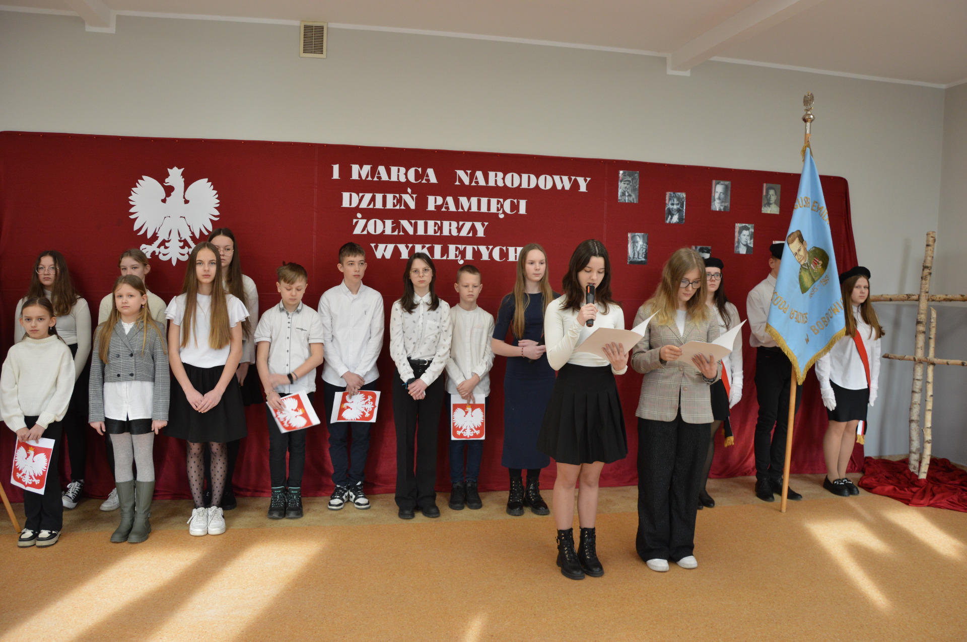 Dnia 5 marca odbył się w naszej szkole apel z okazji obchodzonego w Polsce 1 marca Narodowego Dnia Pamięci Żołnierzy Wyklętych. Uczniowie w swoim programie artystycznym przybliżyli nam kim są Żołnierze Wyklęci. Mówili o tym, za co walczyli i umierali.