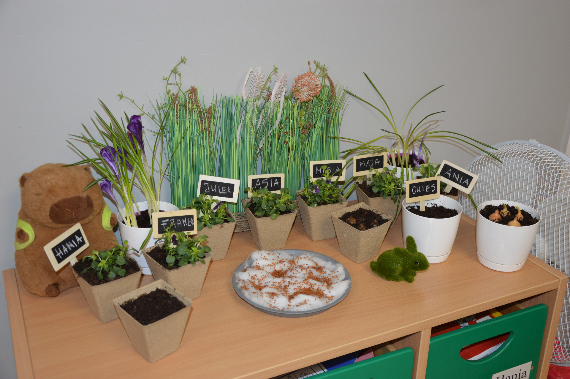 13 marca klasa 3 miała przyjemność uczestniczyć w wiosennym projekcie sadzenia roślin z okazji zbliżającego się pierwszego dnia wiosny. Uczniowie zasadzili różnorodne rośliny, w tym rzeżuchę, owies, bratki, hiacynty, krokusy, szczypiorek oraz rzodkiewkę. Dzieci z zaangażowaniem i radością wykonywały wszystkie prace związane z sadzeniem, ucząc się przy tym, jak dbać o rośliny i jak ważną rolę odgrywają w naszym otoczeniu. To świetna okazja, by wprowadzić wiosnę do klasy i rozpocząć cykl obserwacji wzrostu roślin. Mamy nadzieję, że już niedługo uczniowie będą mogli podziwiać efekty swojej pracy!