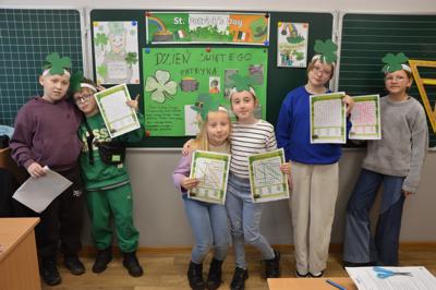 Dnia 17 marca uczniowie klas 2-3 obchodzili Dzień Św. Patryka na lekcjach języka angielskiego. Z tej okazji, dzieci przygotowały kolorowe opaski na głowy z symbolami związanymi z tym świętem, takimi jak trójlistne koniczyny. W trakcie lekcji uczniowie rozwiązywali również łamigłówki oraz quizy, które pomogły im lepiej poznać historię i tradycje Dnia Św. Patryka. Zajęcia były pełne zabawy, były także okazją do nauki nowych słówek i zwrotów związanych z kulturą irlandzką.