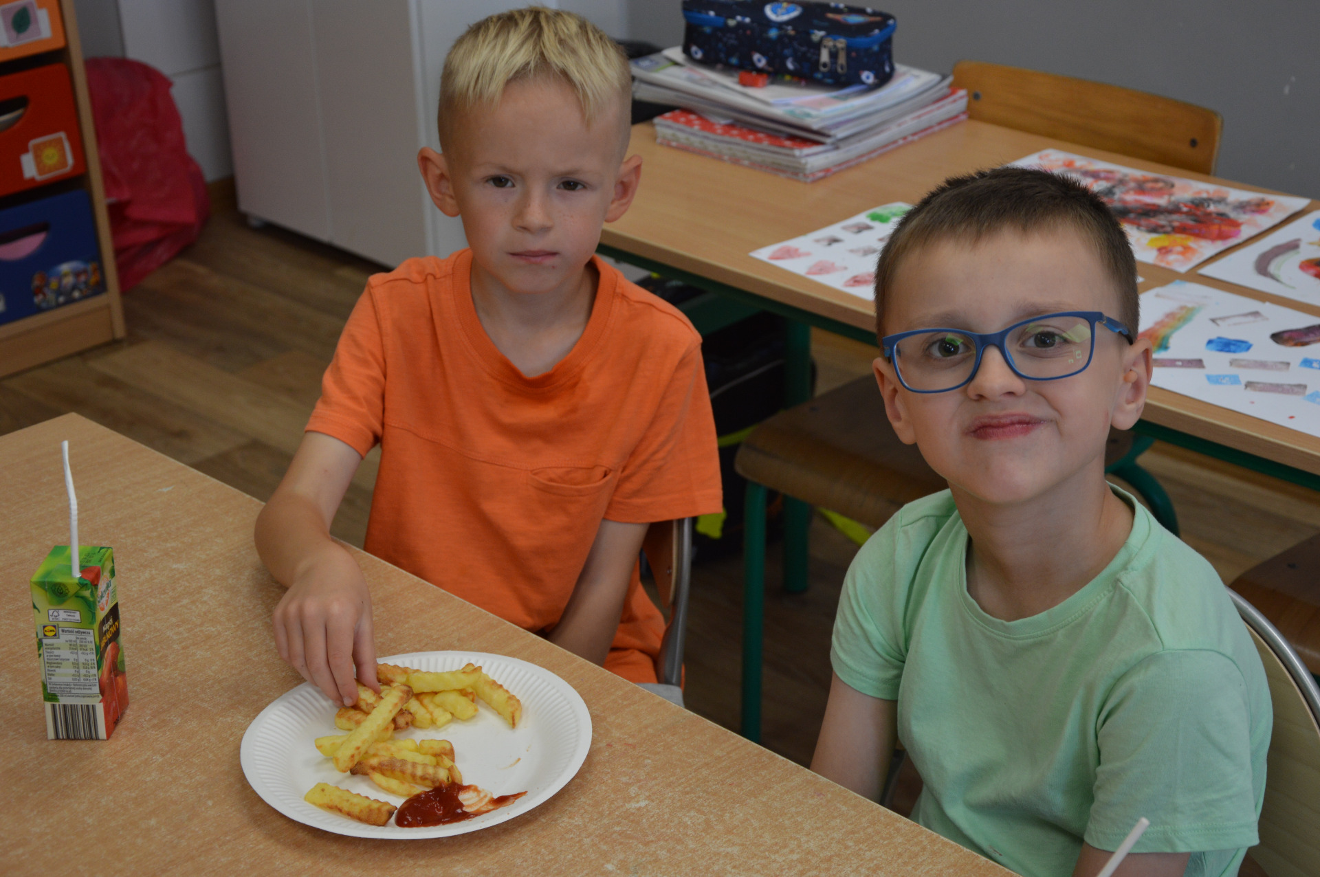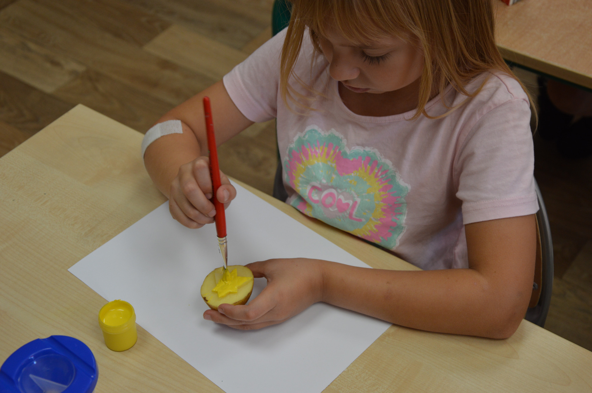 12 września nasi najmłodsi uczniowie – pierwszoklasiści – obchodzili wesoły i pełen atrakcji Dzień Ziemniaka! Tego dnia dzieci nie tylko świetnie się bawiły, ale też zdobyły nową wiedzę. Dowiedziały się, skąd pochodzą ziemniaki, jak rosną i jaką drogę muszą przebyć, zanim trafią na nasze talerze. Nie zabrakło również twórczej zabawy – uczniowie wykonywali kolorowe pieczątki z ziemniaków, dając upust swojej wyobraźni i zdolnościom plastycznym. Zwieńczeniem dnia była kulinarna uczta – wszyscy mieli okazję spróbować najpyszniejszej wersji ziemniaka, czyli frytek, które smakowały wyśmienicie! To był radosny, pełen uśmiechu dzień, który na długo pozostanie w pamięci naszych pierwszaków:)