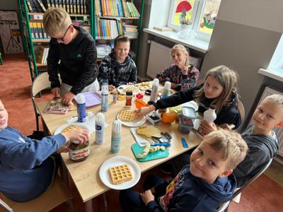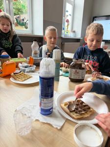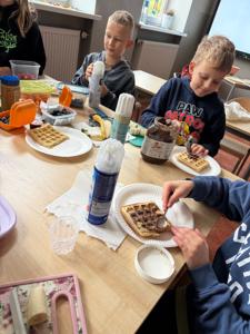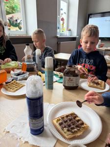 Z tej okazji w naszej klasie panowała słodka atmosfera- wspólnie przygotowaliśmy pyszne gofry 🧇 🧇