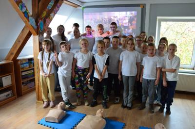 16 października 2025 nasza szkoła włączyła sie w ogólnopolską akcję bicia rekordu w jednoczesnym prowadzeniu resuscytacji krążeniowo - oddechowej (RKO), której partnerem była Wielka Orkiestra Świątecznej Pomocy. Uczniowie z ogromnym zaangażowaniem przez pół godziny nieprzerwanie uciskali klatkę piersiową na fantomach, ucząc się jak w praktyce ratować ludzkie życie.
