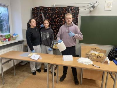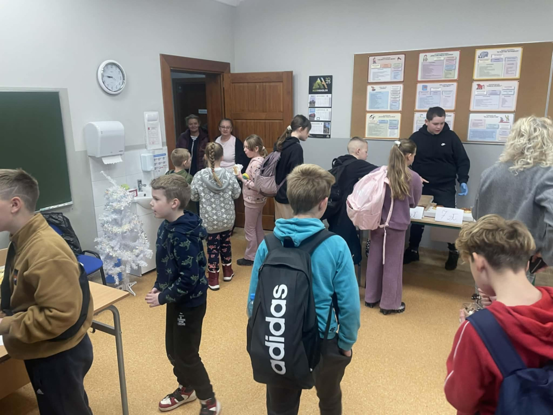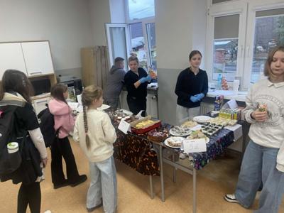 Dnia 26.11.2025r. w naszej szkole odbył się kiermasz charytatywny dla Julii Speiser, dziewczynki chorej na padaczkę lekooporną. W trakcie kiermaszu można było zakupić m.in. pizzerinki, zapiekanki, tosty, mini hot-dogi, frytki, ciasta, deserki i babeczki. Uzbierana kwota 2500zł przekazana została rodzicom Julii. Dziękujemy rodzicom za przygotowanie przepysznych smakołyków, za pomoc w trakcie kiermaszu. Uczniom i uczennicom za pomysł i zaangażowanie.