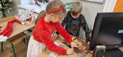 Zanim jednak uczniowie mogli je odebrać, czekało ich miłe wyzwanie — wspólnie rozwiązali matematyczną zagadkę przygotowaną specjalnie na tę okazję. Poradzili sobie wspaniale, a zasłużone prezenty wywołały wiele uśmiechów.