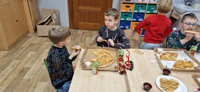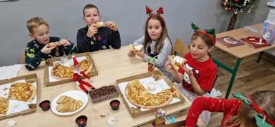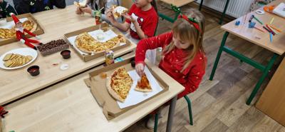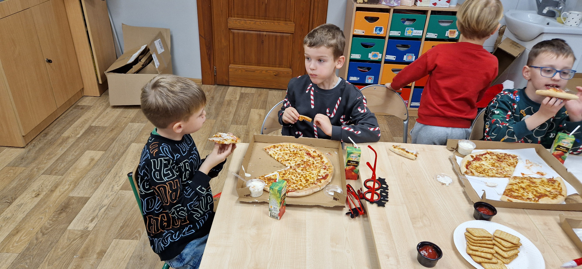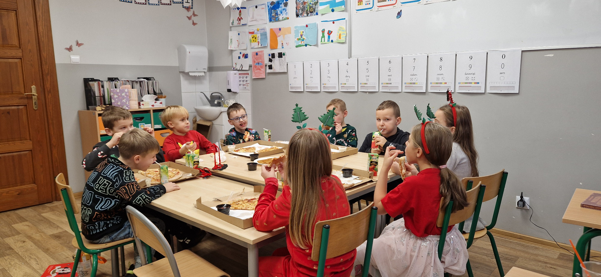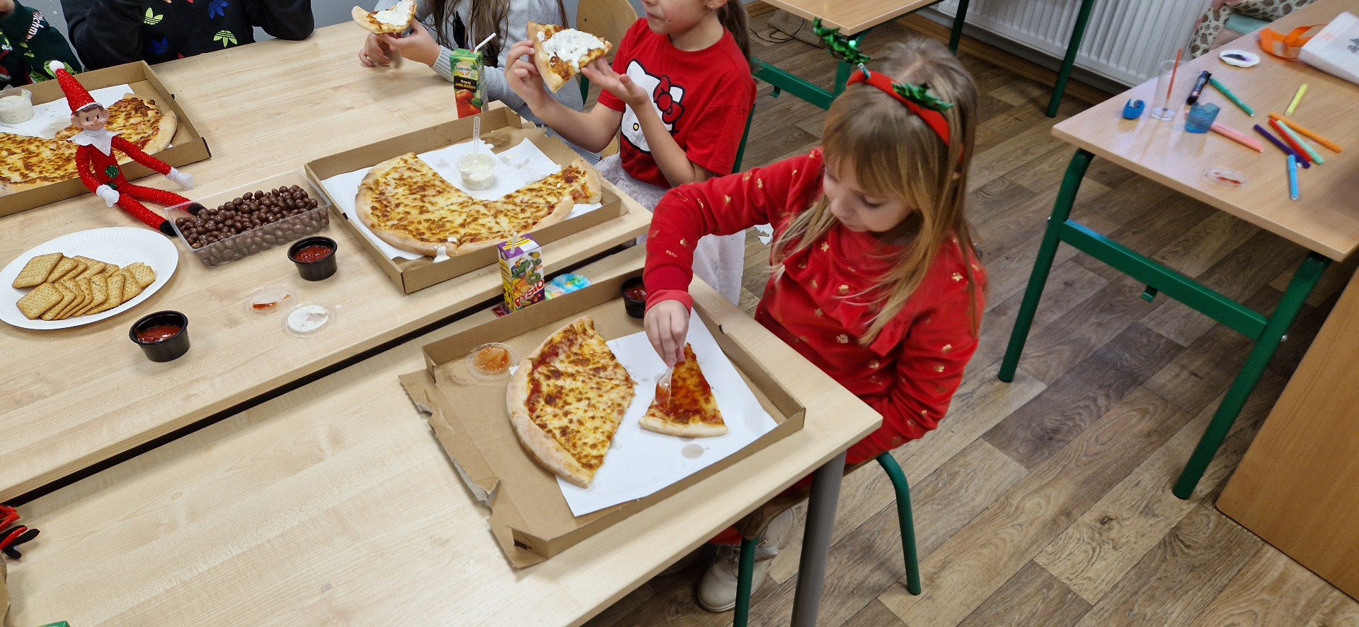 Po emocjach związanych z zagadką i prezentami cała klasa spędziła czas przy pysznej pizzy, tworząc ciepłą i świąteczną atmosferę.