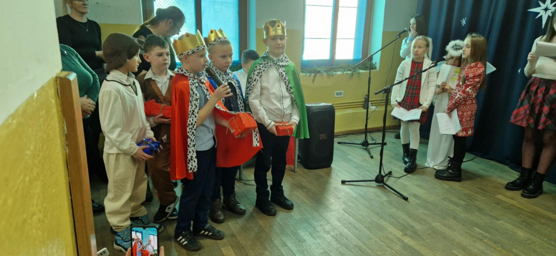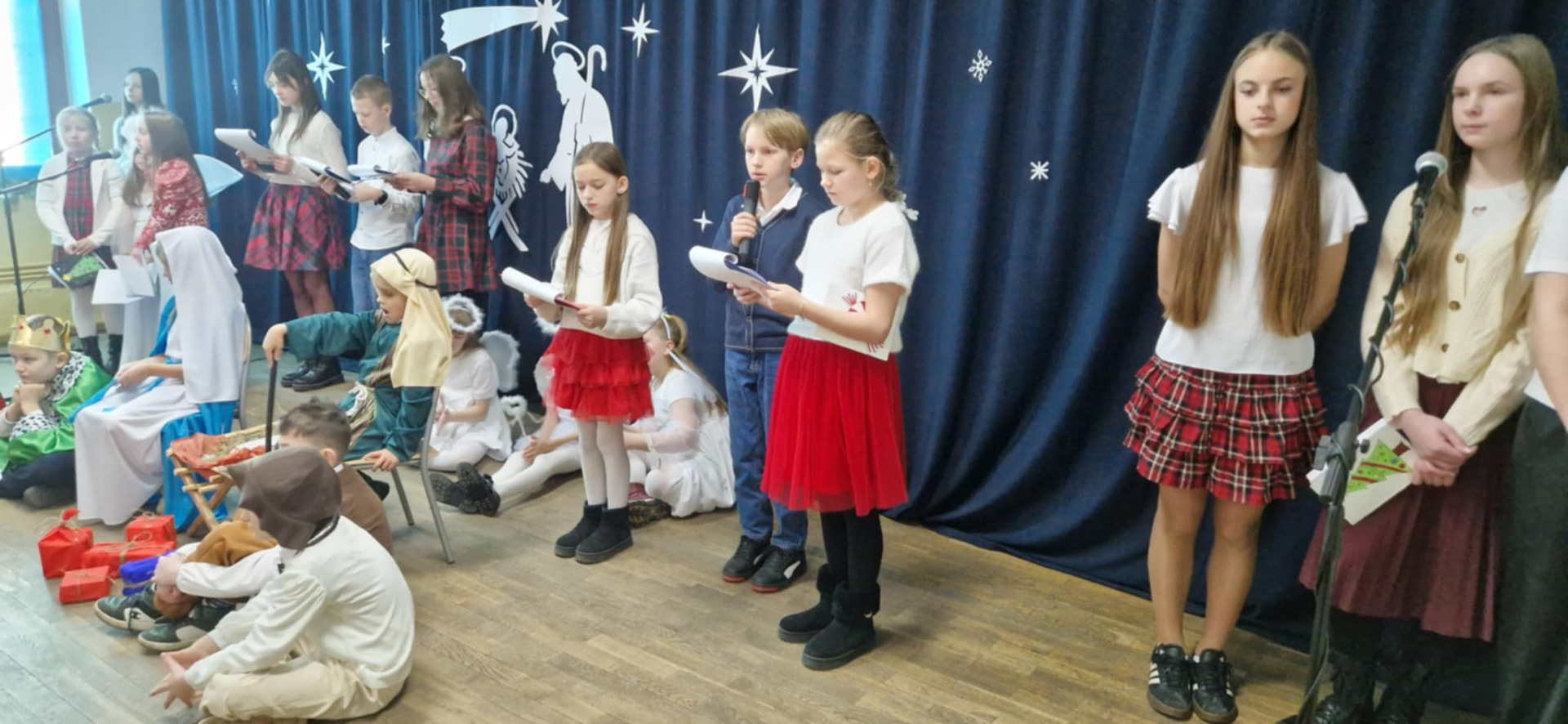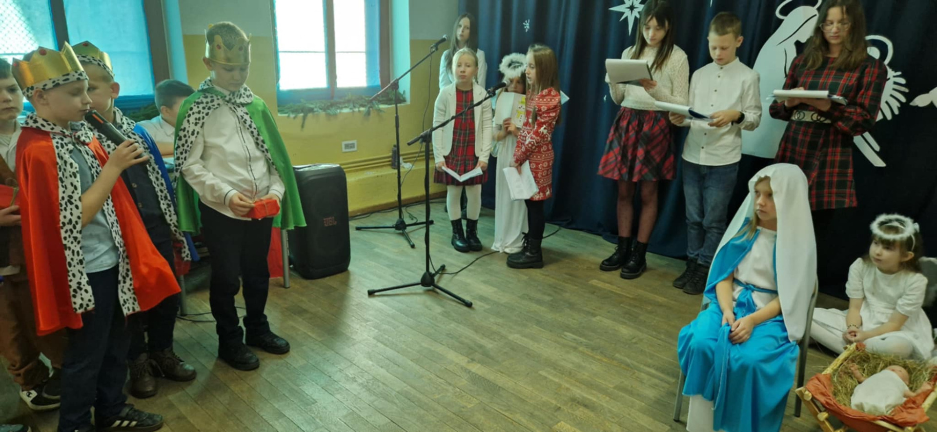 Dnia 19.12 w naszej szkole odbyły się szkolne jasełka przygotowane przez panią Elżbietę Oleś oraz panią Halinę Gancarz. Było to piękne i wzruszające przedstawienie, które wprowadziło wszystkich w prawdziwie świąteczny nastrój. Uczniowie zaprezentowali się wspaniale, a całość dopełniły piękne piosenki oraz kolędy, które napełniły szkolną salę radością i ciepłem. Tego samego dnia odbyła się również szkolna wigilia, zorganizowana przez Rodziców, którzy zadbali o tradycyjne potrawy wigilijne – m.in. barszcz z uszkami, paszteciki, pierogi oraz domowe ciasta. Był to wyjątkowy czas wspólnego świętowania, rozmów i integracji całej społeczności szkolnej.