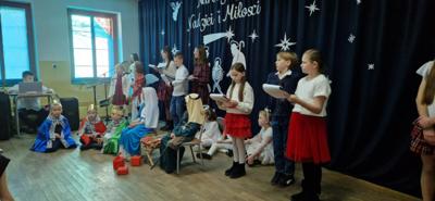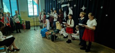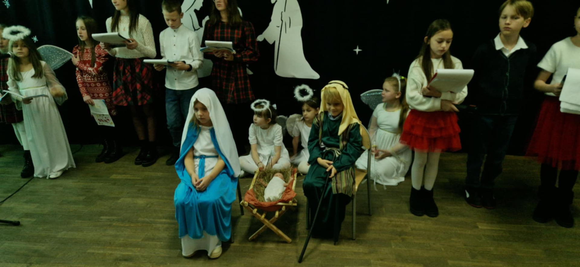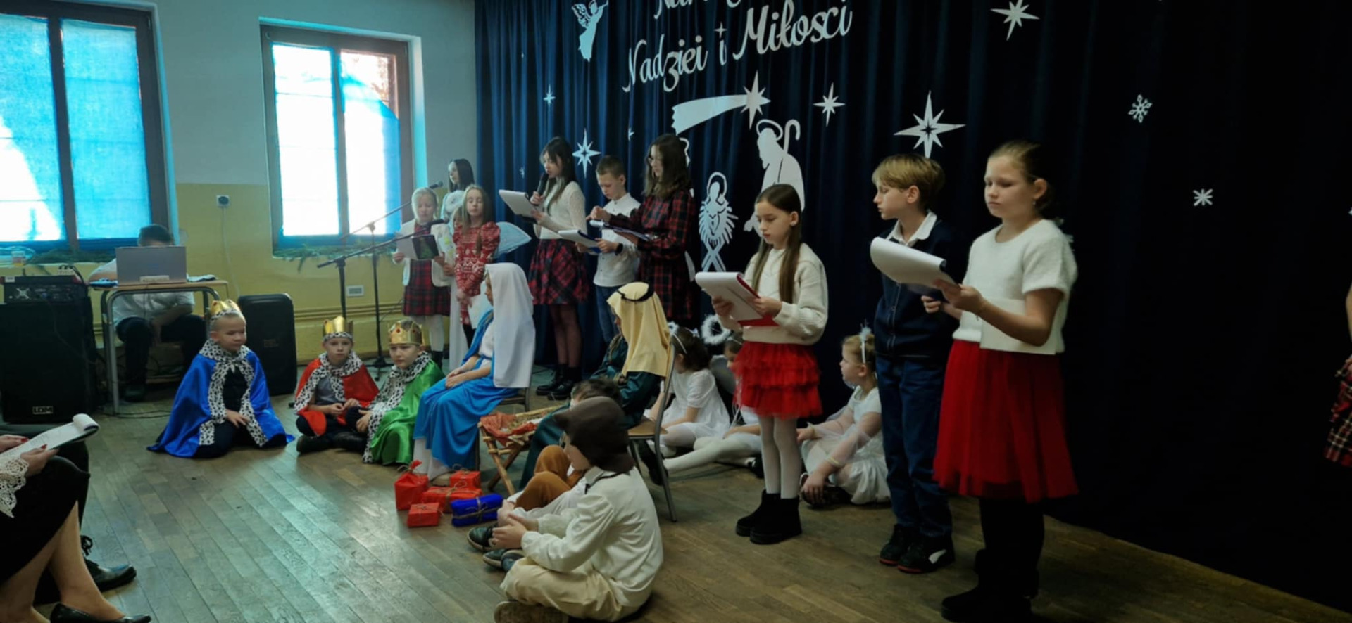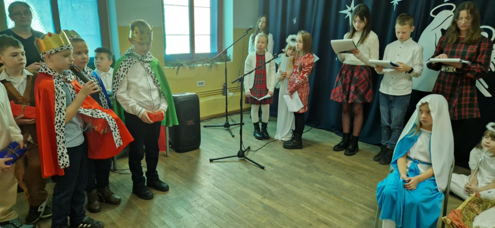 Dnia 19.12 w naszej szkole odbyły się szkolne jasełka przygotowane przez panią Elżbietę Oleś oraz panią Halinę Gancarz. Było to piękne i wzruszające przedstawienie, które wprowadziło wszystkich w prawdziwie świąteczny nastrój. Uczniowie zaprezentowali się wspaniale, a całość dopełniły piękne piosenki oraz kolędy, które napełniły szkolną salę radością i ciepłem. Tego samego dnia odbyła się również szkolna wigilia, zorganizowana przez Rodziców, którzy zadbali o tradycyjne potrawy wigilijne – m.in. barszcz z uszkami, paszteciki, pierogi oraz domowe ciasta. Był to wyjątkowy czas wspólnego świętowania, rozmów i integracji całej społeczności szkolnej.