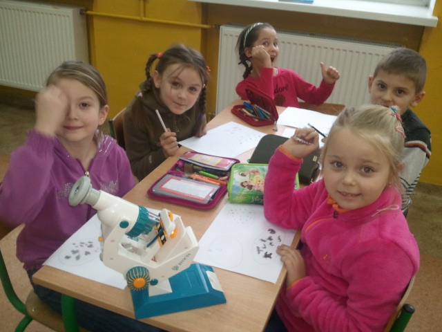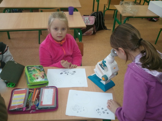 Dzieci miały okazję oglądania wybranych witamin pod mikroskopem.