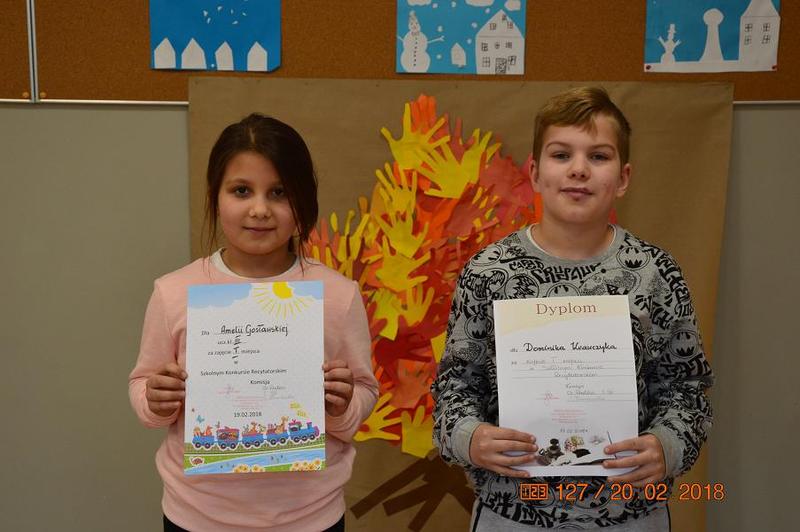 24 lutego 2018 Aktualności III miejsce Dominika, wyróżnienie Amelki Amelka Gosławska oraz Dominik Krawczyk reprezentowali naszą szkołę na Gminnym Konkursie Recytatorskim ,,Czarowanie Słowem”, który odbył się w Szkole Podstawowej w Warszkowie. Nasi uczniowie... Czytaj więcej